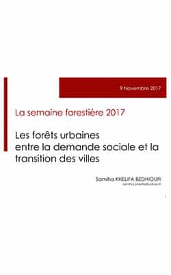 La semaine forestière 2017, Les forêts urbaines entre la demande sociale et la transition des villes, Samiha KHELIFA BEDHIOUFI, samiha_khelifa@yahoo.fr